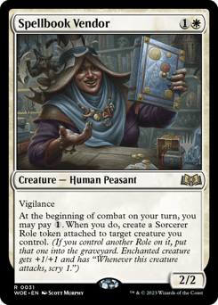 Vigilance At the beginning of combat on your turn, you may pay {1}. When you do, create a Sorcerer Role token attached to target creature you control. (If you control another Role on it, put that one into the graveyard. Enchanted creature gets +1/+1 and has "Whenever this creature attacks, scry 1.")