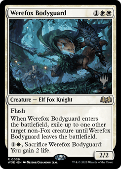 Flash When this creature enters, exile up to one other target non-Fox creature until this creature leaves the battlefield. {1}{W}, Sacrifice this creature: You gain 2 life.