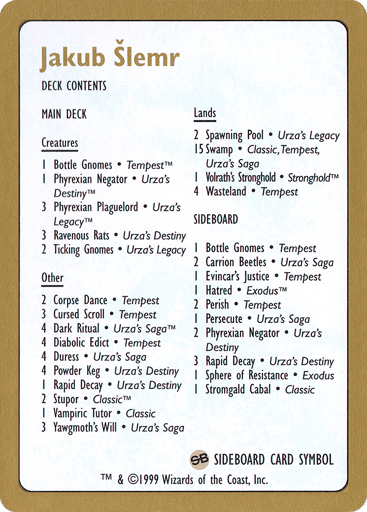 Jakub Šlemr Decklist (1999) #js0b