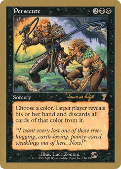 Choose a creature type. Target player reveals their hand and discards all creature cards of that type. Then destroy all creatures of that type that player controls. They can't be regenerated.