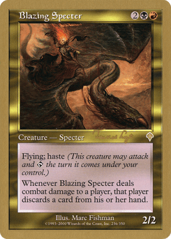 Flying, haste Whenever this creature deals combat damage to a player, that player discards a card.
