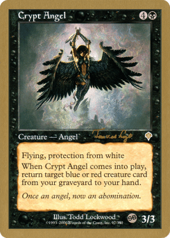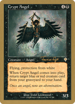 Tom van de Logt is the 2001 Netherlands National Champion as well as one of an elite group of players who have posted back-to-back World Championship Top 8 performances. Currently a student in Groesbeek, van de Logt posted an impressive 5—1 record in the Standard portion of this year's Worlds. He described his aggressive black-red "Machine Head" deck as "the deck that beats the deck that beats 'Fires.'" He liked the explosive "I win" draws that his deck provided, and he especially liked the way it performed against blue decks.
