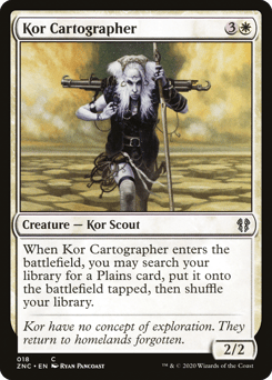 Landfall — Whenever a land you control enters, choose one — • Create a 1/1 white Kor Ally creature token. • Creatures you control get +1/+1 until end of turn.