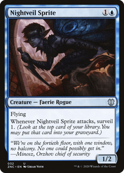 Flying Prowl {2}{U} (You may cast this for its prowl cost if you dealt combat damage to a player this turn with a Faerie or Rogue.) When this creature enters, if its prowl cost was paid, draw a card.
