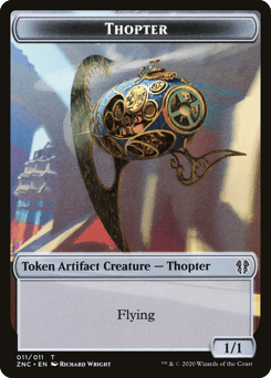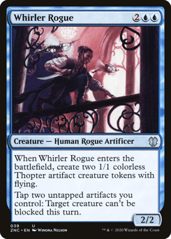 When this creature enters, create two 1/1 colorless Thopter artifact creature tokens with flying. Tap two untapped artifacts you control: Target creature can't be blocked this turn.