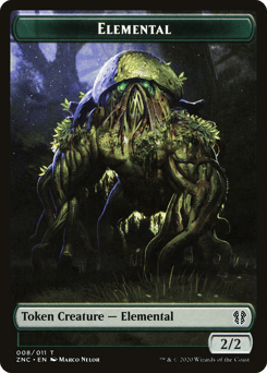 Landfall — Whenever a land you control enters, create a 2/2 green Elemental creature token.