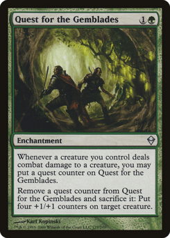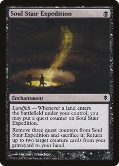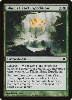 Landfall — Whenever a land you control enters, you may put a quest counter on this enchantment. Remove three quest counters from this enchantment and sacrifice it: Draw two cards.