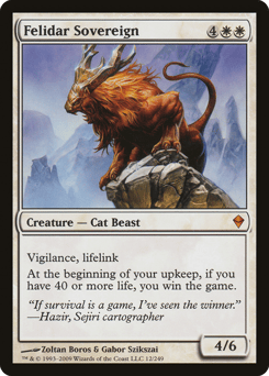 Vigilance (Attacking doesn't cause this creature to tap.) Lifelink (Damage dealt by this creature also causes you to gain that much life.) At the beginning of your upkeep, if you have 40 or more life, you win the game.