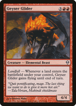 Flying Landfall — Whenever a land you control enters, this creature gets +2/+2 until end of turn.