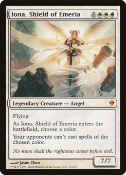 Flying As Iona enters, choose a color. Your opponents can't cast spells of the chosen color.
