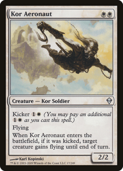Kicker {1}{W} (You may pay an additional {1}{W} as you cast this spell.) Flying When this creature enters, if it was kicked, target creature gains flying until end of turn.