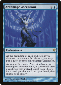At the beginning of each end step, if you drew two or more cards this turn, you may put a quest counter on this enchantment. As long as this enchantment has six or more quest counters on it, if you would draw a card, you may instead search your library for a card, put that card into your hand, then shuffle.