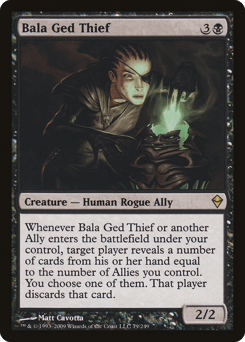 Whenever this creature or another Ally you control enters, target player reveals a number of cards from their hand equal to the number of Allies you control. You choose one of them. That player discards that card.