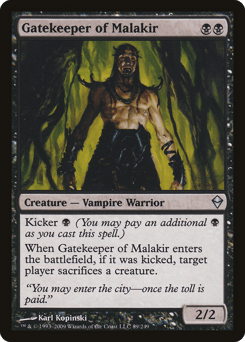 Kicker {B} (You may pay an additional {B} as you cast this spell.) When this creature enters, if it was kicked, target player sacrifices a creature of their choice.