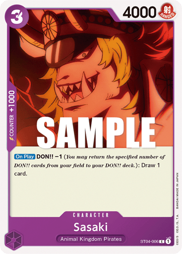 [On Play] DON!! −1 (You may return the specified number of DON!! cards from your field to your DON!! deck.): K.O. up to 1 of your opponent's Characters with a cost of 4 or less.