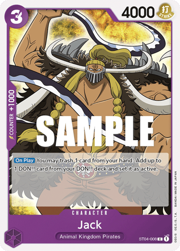 [Activate: Main] You may rest this Stage: If your Leader has the {Animal Kingdom Pirates} type, add up to 1 DON!! card from your DON!! deck and rest it.
