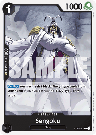 [On Play] You may trash 2 black {Navy} type cards from your hand: If your Leader has the {Navy} type, draw 3 cards.