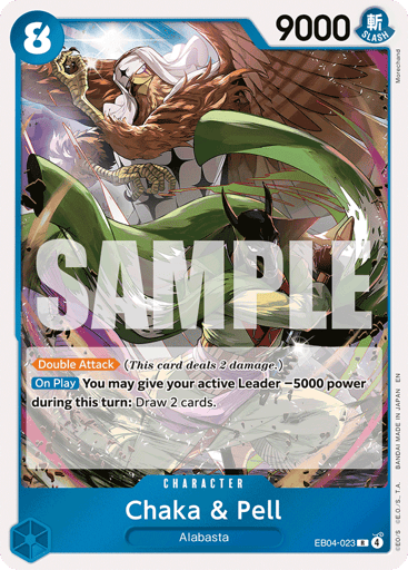 [Double Attack] (This card deals 2 damage.) [On Play] You may give your active Leader −5000 power during this turn: Draw 2 cards.
