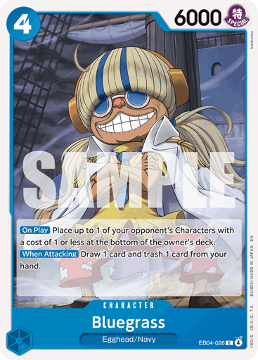 [On Play] Place up to 1 of your opponent's Characters with a cost of 1 or less at the bottom of the owner's deck. [When Attacking] Draw 1 card and trash 1 card from your hand.