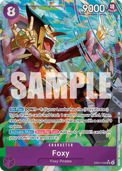 [On Play] DON!! −1: If you have 3 or more {Foxy Pirates} type Characters, K.O. up to 1 of your opponent's Characters with 6000 base power or less.