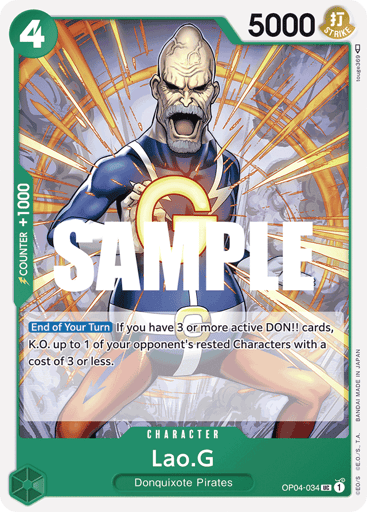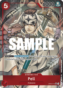 [On Your Opponent's Attack] [Once Per Turn] DON!! −2 (You may return the specified number of DON!! cards from your field to your DON!! deck.) You may rest this Character: K.O. up to 1 of your opponent's Characters with a cost of 4 or less.