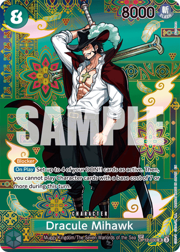 [Blocker] [On Play] Set up to 4 of your DON!! cards as active. Then, you cannot play Character cards with a base cost of 7 or more during this turn.