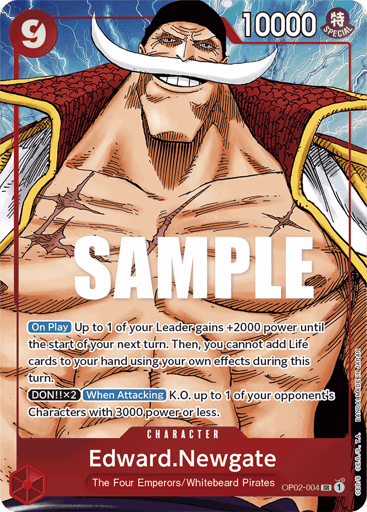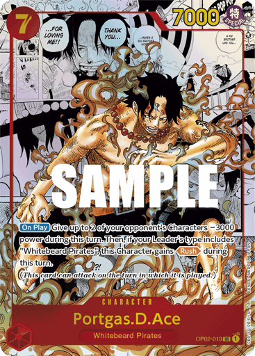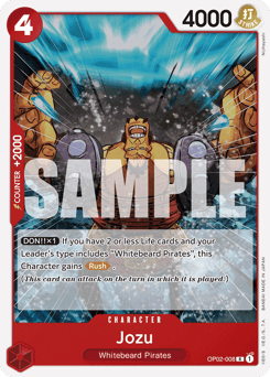 [DON!! x1] If you have 2 or less Life cards and your Leader's type includes "Whitebeard Pirates", this Character gains [Rush].(This card can attack on the turn in which it is played.)