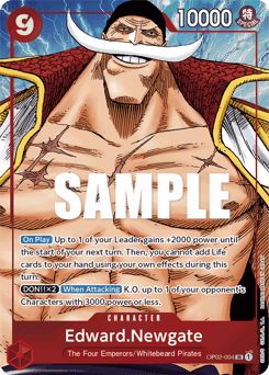 [Your Turn] If you have 1 or less Life cards, your [Edward.Newgate] and all your Characters with a type including "Whitebeard Pirates" gain +2000 power. [Trigger] Play this card.