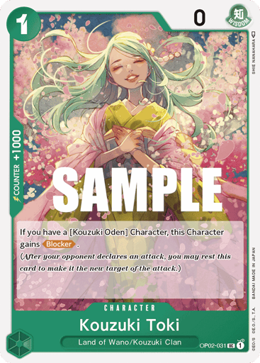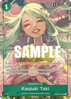 If you have a [Kouzuki Oden] Character, this Character gains [Blocker].(After your opponent declares an attack, you may rest this card to make it the new target of the attack.)