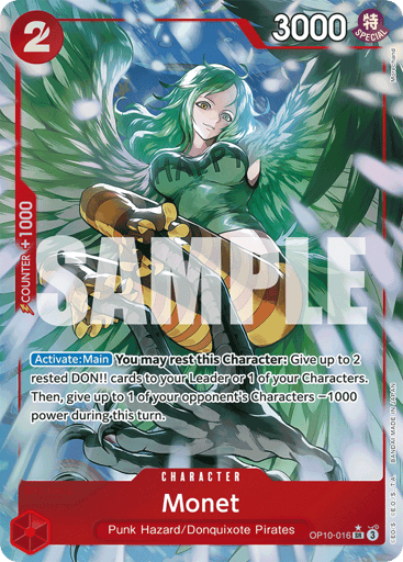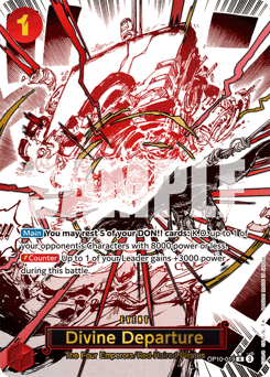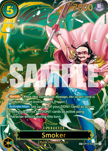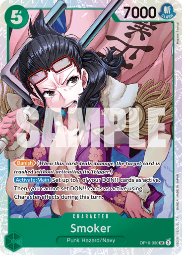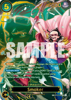[Banish] (When this card deals damage, the target card is trashed without activating its Trigger.) [Activate: Main] Set up to 1 of your DON!! cards as active. Then, you cannot set DON!! cards as active using Character effects during this turn.