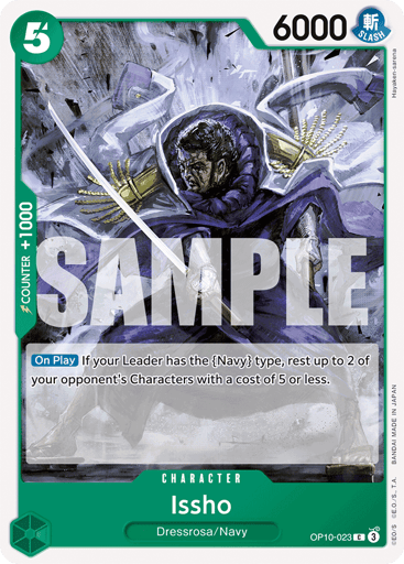 [On Play] If your Leader has the {Navy} type, rest up to 2 of your opponent's Characters with a cost of 5 or less.