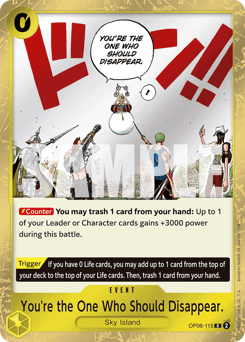 You're the One Who Should Disappear.Reprint(PRB02) | OP06-115 | R | $1.39 |