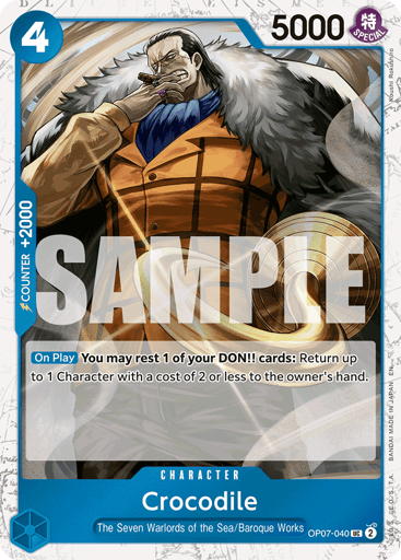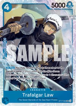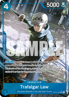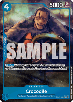 [On Play] You may return 1 of your Characters to the owner's hand: If your Leader has the {The Seven Warlords of the Sea} type, return up to 1 Character with a cost of 4 or less to the owner's hand.