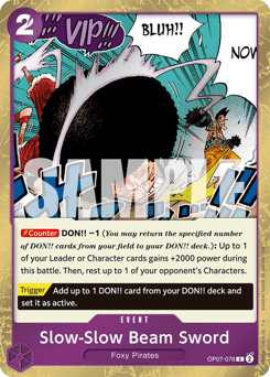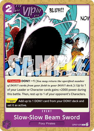 [Counter] DON!! −1 (You may return the specified number of DON!! cards from your field to your DON!! deck.): Up to 1 of your Leader or Character cards gains +2000 power during this battle. Then, rest up to 1 of your opponent's Characters. [Trigger] Add up to 1 DON!! card from your DON!! deck and set it as active.