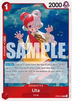 [On Play] Look at 5 cards from the top of your deck; reveal up to 1 {Red-Haired Pirates} type card and add it to your hand. Then, place the rest at the bottom of your deck in any order.