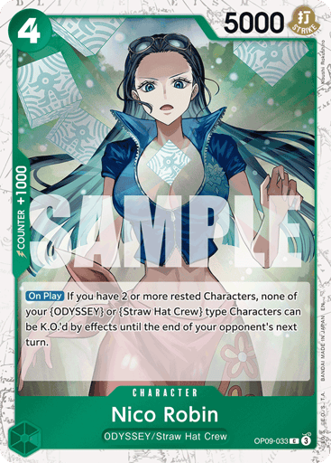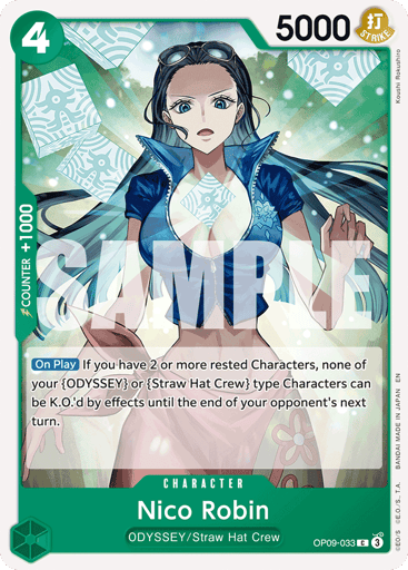[On Play] If you have 2 or more rested Characters, none of your {ODYSSEY} or {Straw Hat Crew} type Characters can be K.O.'d by effects until the end of your opponent's next turn.