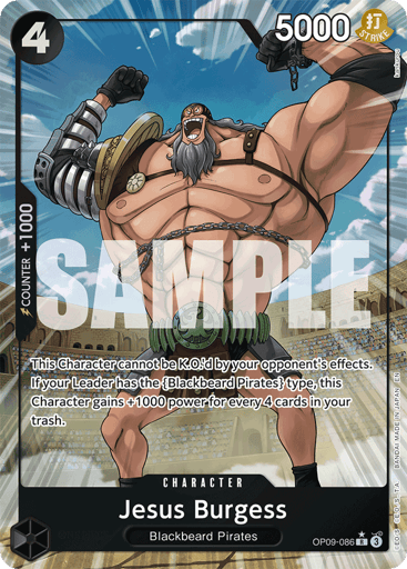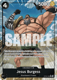 This Character cannot be K.O.'d by your opponent's effects.If your Leader has the {Blackbeard Pirates} type, this Character gains +1000 power for every 4 cards in your trash.