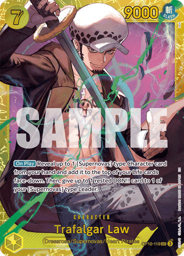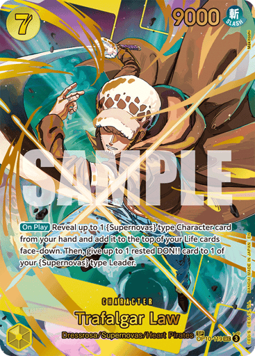 [On Play] Reveal up to 1 {Supernovas} type Character card from your hand and add it to the top of your Life cards face-down. Then, give up to 1 rested DON!! card to 1 of your {Supernovas} type Leader.