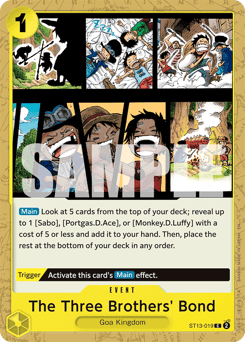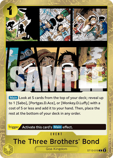 [On Play] If you have a face-up Life card, play up to 1 [Sabo], [Portgas.D.Ace], or [Monkey.D.Luffy] with a cost of 2 from your hand or trash.