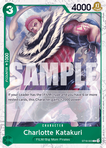 If your Leader has the {FILM} type and you have 6 or more rested cards, this Character gains +2000 power.