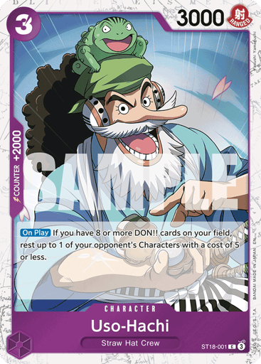 [On Play] If you have 8 or more DON!! cards on your field, rest up to 1 of your opponent's Characters with a cost of 5 or less.