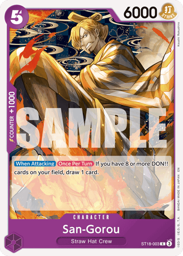 [Blocker] (After your opponent declares an attack, you may rest this card to make it the new target of the attack.) [On Play] If you have 8 or more DON!! cards on your field, trash 1 card from your hand and draw 2 cards.