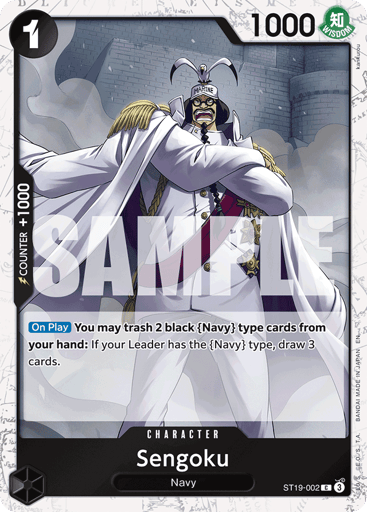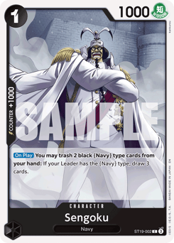 [On Play] You may trash 2 black {Navy} type cards from your hand: If your Leader has the {Navy} type, draw 3 cards.