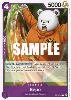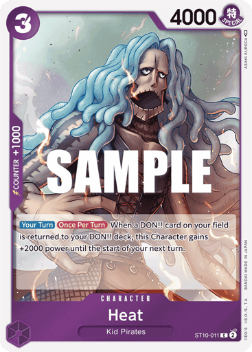 [On Play]/[When Attacking] DON!! −1 (You may return the specified number of DON!! cards from your field to your DON!! deck.): Up to 1 of your Leader gains +1000 power until the start of your next turn.