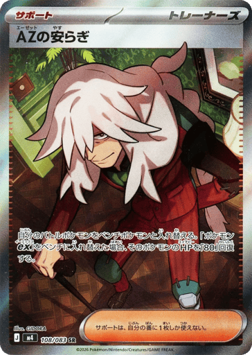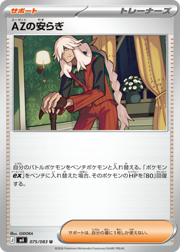 自分のバトルポケモンをベンチポケモンと入れ替える。「ポケモンex」をベンチに入れ替えた場合、そのポケモンのHPを「80」回復する。 サポートは、自分の番に1枚しか使えない。