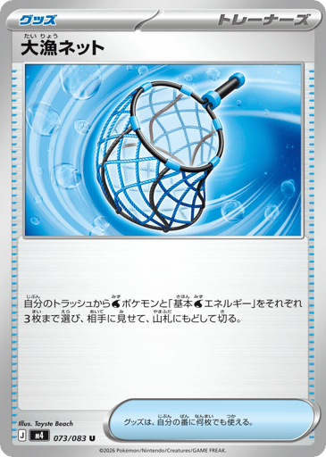 自分のトラッシュからWaterエネルギー」をそれぞれ3枚まで選び、相手に見せて、山札にもどして切る。 グッズは、自分の番に何枚でも使える。