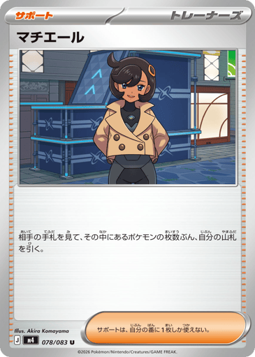 相手の手札を見て、その中にあるポケモンの枚数ぶん、自分の山札を引く。 サポートは、自分の番に1枚しか使えない。