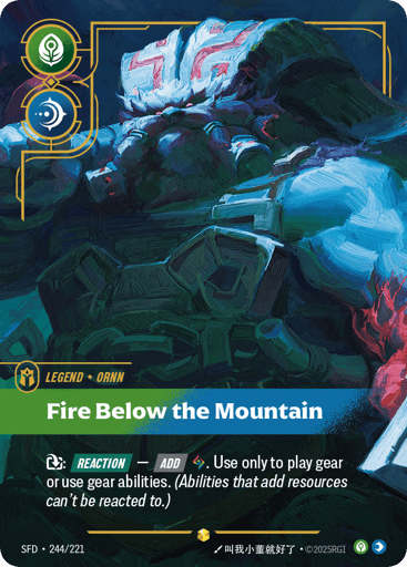 {E}: [Reaction] — [Add] {RR}. Use only to play gear or use gear abilities. (Abilities that add resources can't be reacted to.)